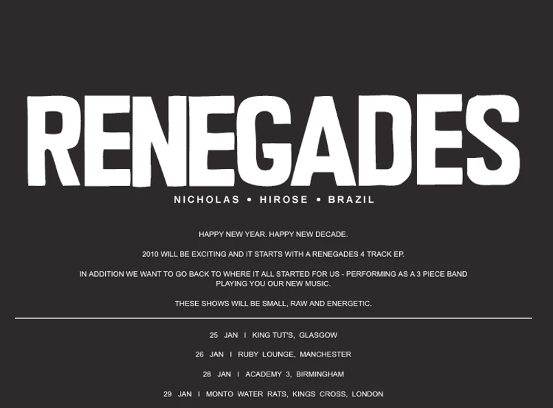 Zespół nagrał EP-kę zatytułowaną "Renegades". Na zestaw składają się cztery utwory.